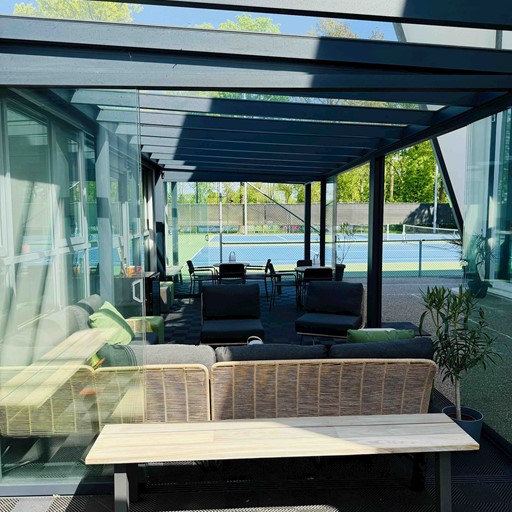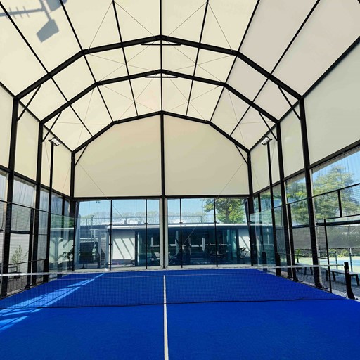 Padellen zonder last te hebben van de weersomstandigheden. Het dak is overal 9.5 meter hoog en de zijwanden kunnen bij warm weer open.